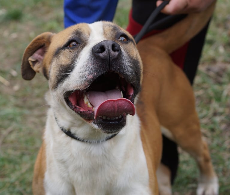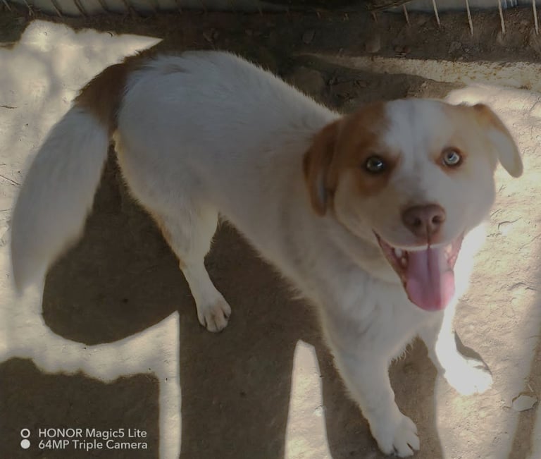 is a 3 year old handsome, friendly boy, very bouncy and full of energy he always has a smile on his face and is ready to play with his kennel friends. He is medium sized with a scruffy coat.