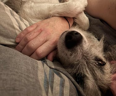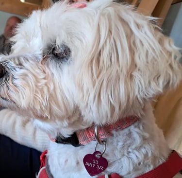 Sweet older lady Lark, now keeps her sweet older human on his toes!